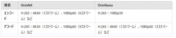 2.EC-OrinNX」と「EC-OrinNano」のビデオ機能に違い