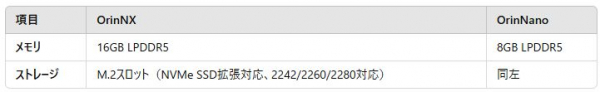 3.EC-OrinNX」と「EC-OrinNano」ラインアップで搭載されるメモリーとM.2