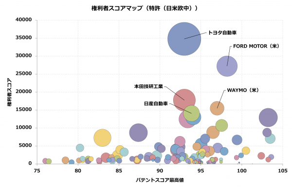 株式会社パテント・リザルトは1月22日、『自動運転関連技術』について、世界での特許総合力を示す「グローバルスコア」の企業ランキングを、特許分析ツール「Biz Cruncher」を用いて集計しました。