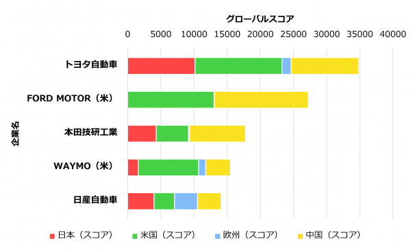 本分析の詳細については、『自動運転関連技術』グローバルスコア:ランキングデータにてご覧いただけます。