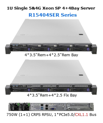 【1U ラックマウント RAIDサーバー, シングル 第5・4世代Intel Xeon SP、Intel C741 PCH、4*3.5” SAS/SATA 可脱着ベイ+4*2.5” NVMe 可脱着ベイ、1*PCIe5.0/CXL1.1(X16)バス、最大2TB DDR5 ECC 3DS-RDIMM / 768GB DDR5 ECC RDIMM、2*10GbE LAN、750W (1+1) CRPS冗長化電源】