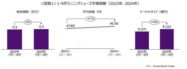 ランニングシューズ市場規模、2024年1-9月は前年同期比14%増