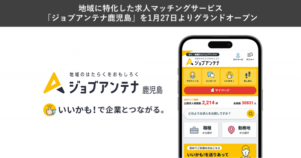 沖縄発のインターネットベンチャーであるインタラクティブ株式会社(本社:沖縄県宜野湾市、代表取締役社長:臼井 隆秀、以下「インタラクティブ」)は、鹿児島エリア・鹿児島企業に特化した双方向な求人マッチングサービス「ジョブアンテナ鹿児島」を、本日2025年1月27日(月)にグランドオープンしました。なお、ジョブアンテナ鹿児島には、鹿児島に拠点を持つベンチャー企業から鹿児島の地元企業まで、本日時点で32社の企業情報・120件の求人情報が掲載されています。