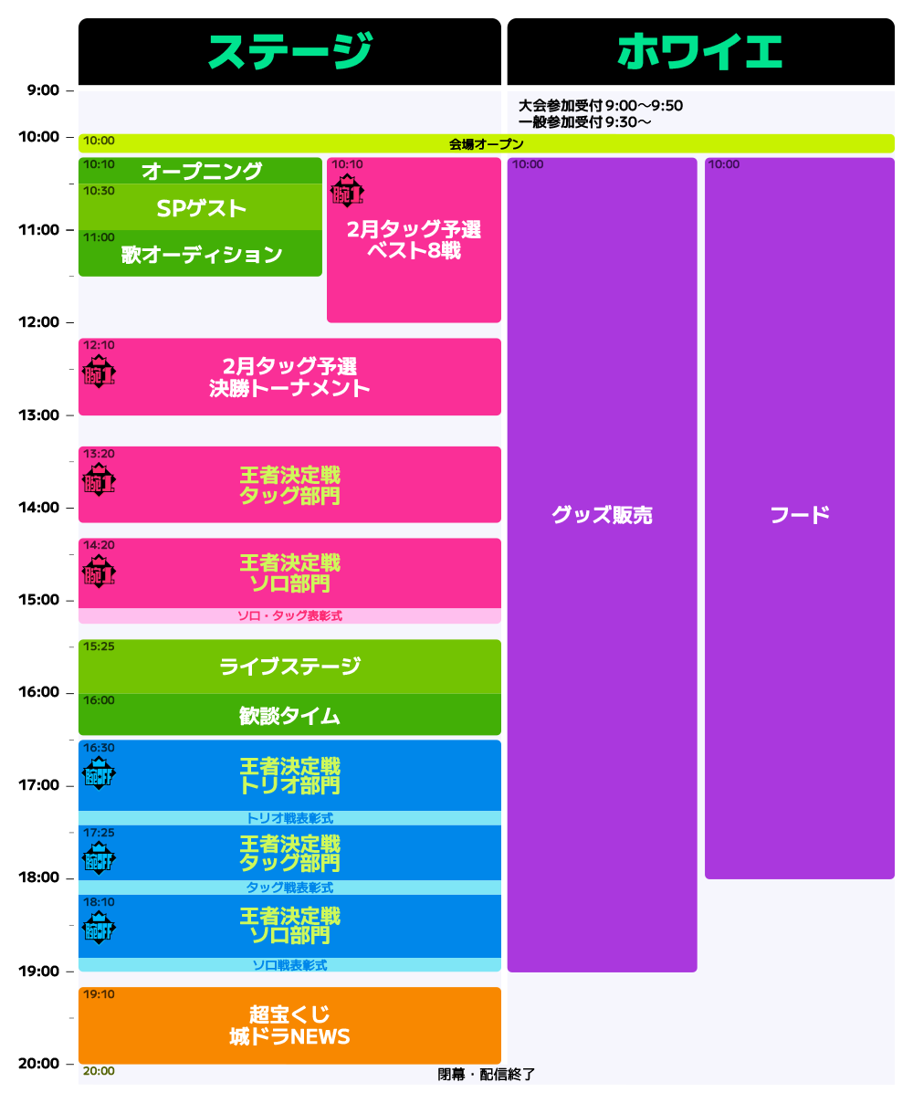 2月15日(土)に東京・大手町三井ホールにて開催される「城ドラフェスティバル2024-2025 いくぜ!10周年」では、バトルはもちろん、豪華ゲストをお迎えして「城ドラ☆ソングライブ」も開催!そこで、バトルもライブもステージ間近で座って観覧できる有料席をご用意しました。チケットは、1月27日(月)12時より販売いたします。詳しくは特設ページをご確認ください。