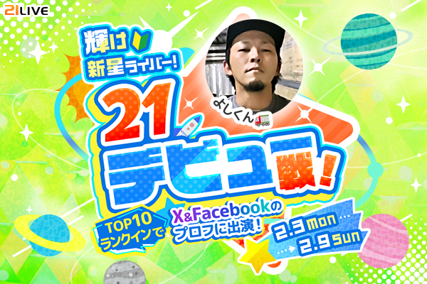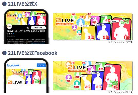 1~10位に入賞した方に、21LIVE公式SNS【X&Facebook】のプロフ出演権をプレゼント☆