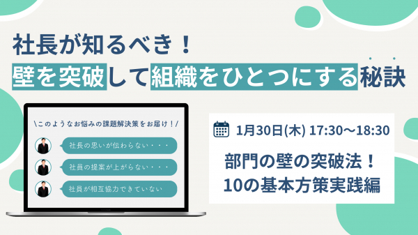 本セミナーでは、明日から実践できるシンプルな改善策や、部署間の壁を測定し克服するための具体的な方法をご提供いたします。