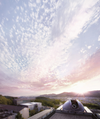 京都産業大学 神山天文台は、創設者の荒木俊馬博士が天文学・宇宙物理学者であり、開学当初より宇宙物理学と天文学の教育・研究に注力してきたことから、そのシンボルとして2010年(平成22)年4月に開設されました。私立大学では国内最大となる「荒木望遠鏡」(口径1.3m反射望遠鏡)と様々な天体観測装置、及び各種の実験・開発機器を備えた研究施設として最先端の高度な研究活動を続けています。また、常設展示、企画展、講演会や荒木望遠鏡を使った天体観望会などを開催し、宇宙に触れる機会を身近に提供する博物館指定施設として、一般にも公開しています。