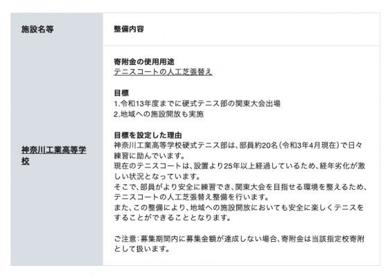 今回の寄附に伴い、目標金額を達成した事業