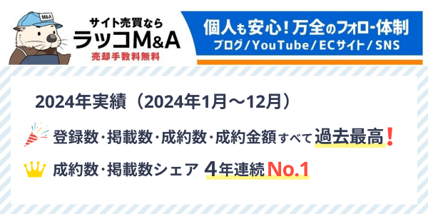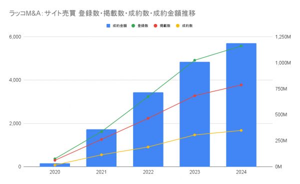 ラッコ株式会社(福岡市中央区)が運営するサイト売買プラットフォーム「ラッコM&A」は、2024年に登録数、掲載数、成約数、成約金額のすべてでサービス開始以来最高を記録しました。