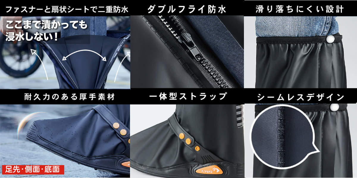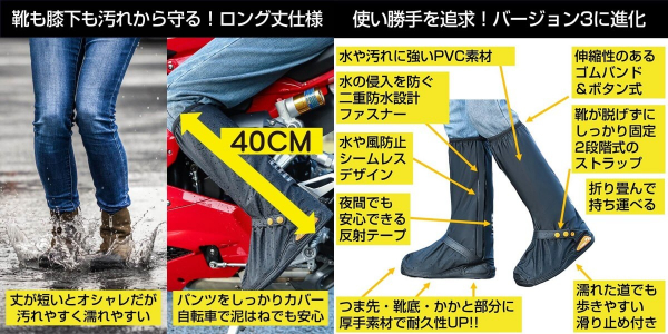 パンツや靴下もしっかりカバー、自転車で泥はねでも安心です。