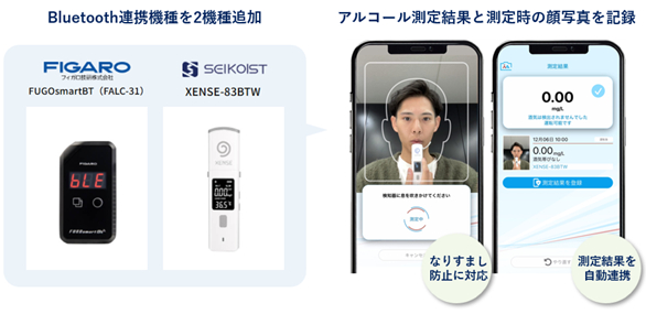 また、測定時の顔写真撮影機能の実装により、「なりすまし」を防止することで、アルコール検知器を用いた確実なアルコールチェックの実施記録と保存が可能となります。