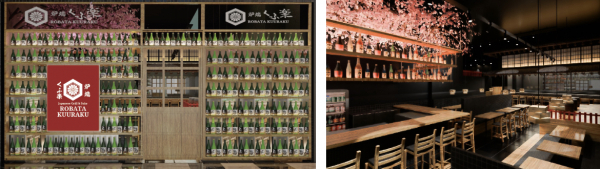 本店舗は97席(カウンター席12席、個室28席、半個室14席、ソファ席26席、掘り炬燵席10席、酒バー7席)を備え、開放感のある設計を採用。店頭には日本酒ボトルをディスプレイし、エントランスには桜で装飾された酒バーを設置。オープンキッチンでは、藁焼きの炎が迫力の演出を生み出します。さらに、和太鼓が飾られたステージは座敷席としても利用可能。最大40名の個室を用意し、パーティー利用にも対応します。