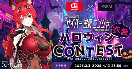 総合ホビー企業である株式会社ホビージャパン(本社:東京都渋谷区、代表取締役社長:松下大介、以下「ホビージャパン」)と株式会社ブックリスタ(本社:東京都港区、代表取締役社長:村田茂、以下「ブックリスタ」)の運営する〈デジタルクリエイター〉と〈クライアント〉をつなぐポートフォリオEC「ENRAI(https://enraise.net/)」は、2025年2月3日より、VRハロウィンをより楽しく盛り上げるために「サイバーお狐ニンジャ ハロウィン衣装コンテスト」を開催いたします。