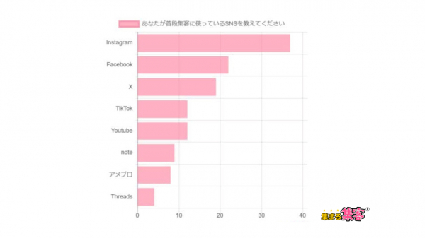 SNSがダントツで多い。次点でSEO(WordPress・Youtube)