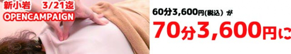【新小岩店】OPENキャンペーン第1弾 ボディ10分延長キャンペーン! おひとり様70分 3,600円(税込)