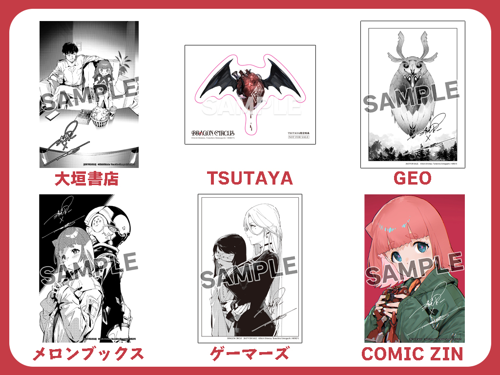 『DRAGON CIRCUS』1巻の発売を記念し、下記書店にて特典イラストペーパーや、特典ステッカーの配布を実施いたします。