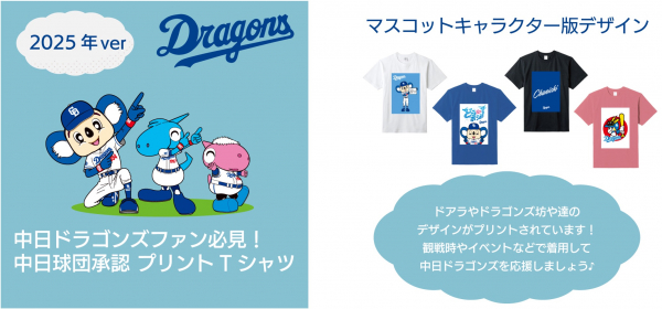 ● 中日ドラゴンズのロゴやドアラがプリントされたファン必見のTシャツ