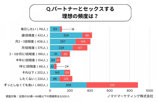 まず、パートナー(配偶者)とセックスする理想の頻度について聞きました。