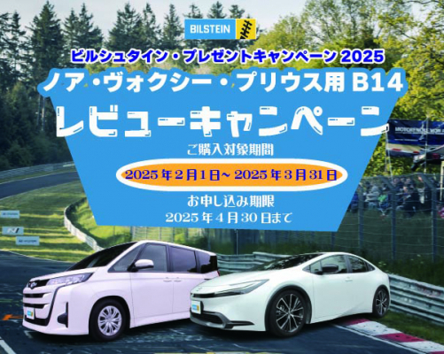 この度ドイツBILSTEIN社の日本総輸入販売元である株式会社阿部商会(本社:東京都千代田区、代表取締役:阿部 文保)では、2025年2月1日から 2025年3月末日までの期間『BILSTEINトヨタノア・ヴォクシー・プリウス用B14レビューキャンペーン』を実施いたします。