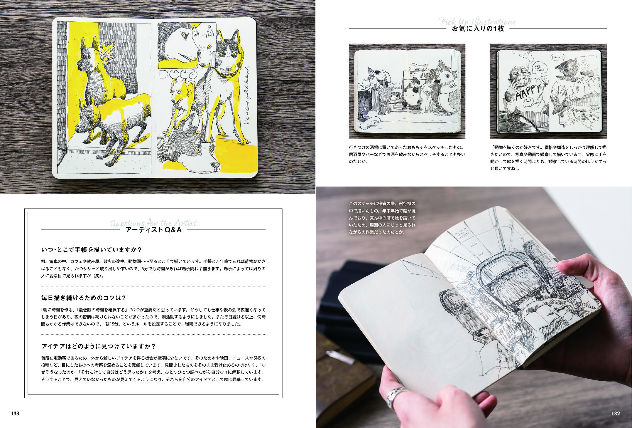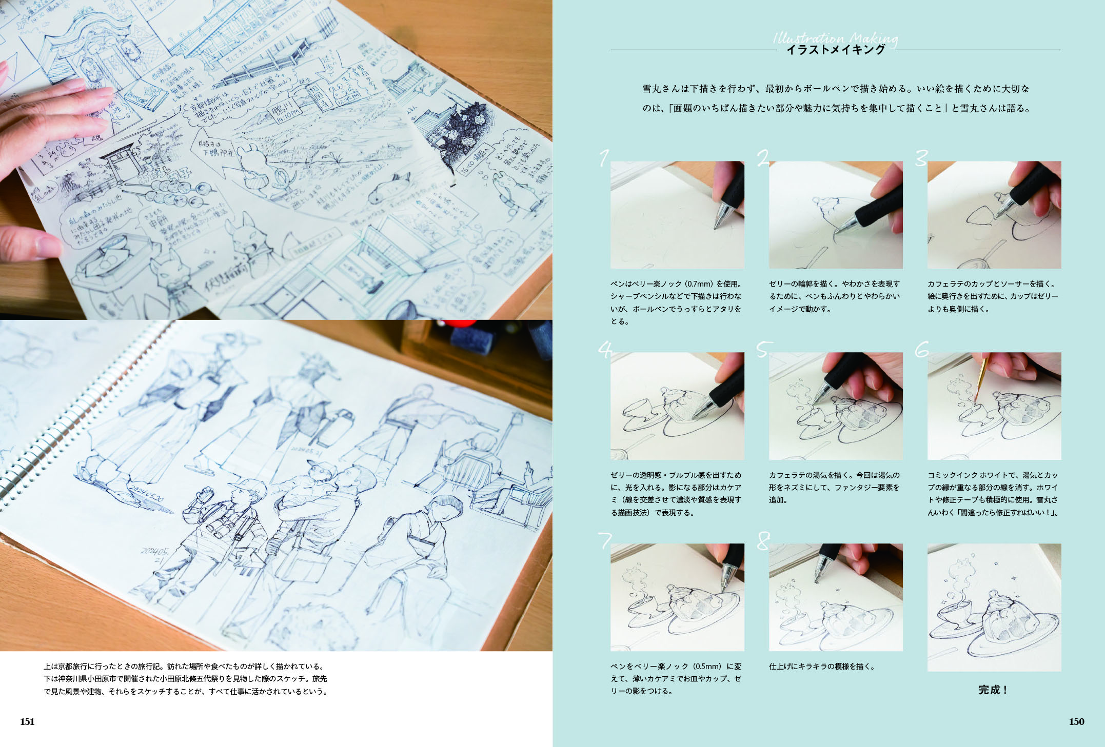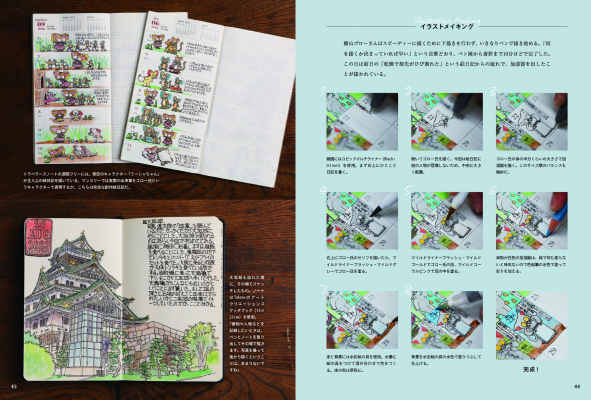 本書はその中でも、近年SNSで話題の「ペン画手帳」にフィーチャー。トラベラーズノート、モレスキン、ロルバーン、etc.……。おしゃれな手帳にペン画で記録を残すことで、まるで宝箱のようなセルフダイアリーが完成します。