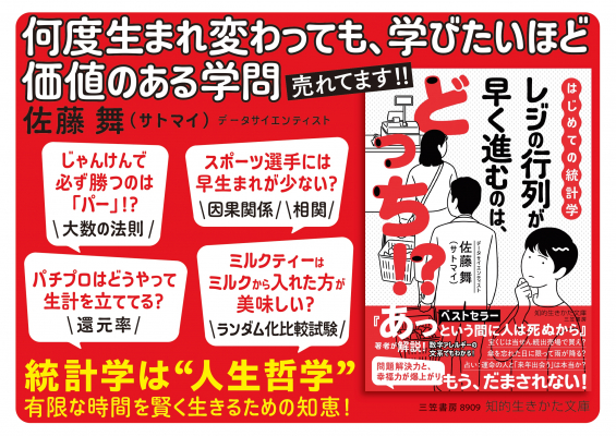 新刊書籍『はじめての統計学 レジの行列が早く進むのは、どっち!?』(著者:佐藤 舞(サトマイ))を2月18日(火)に発売いたします。