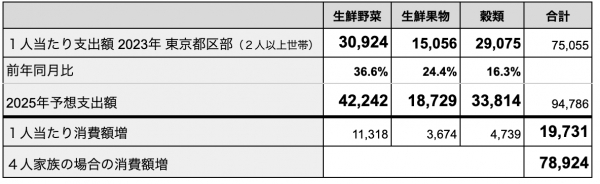 生鮮野菜・生鮮果物・穀類の価格上昇に伴う一人当たりの消費額は年間19,731円となり、4人世帯であれば年間78,924円の負担増となります。この額を手取りで支給するため今回の支給額を10万円としました。(出典:家計調査 / 家計収支編 二人以上の世帯 詳細結果表https://www.e-stat.go.jp/stat-search/files?stat_infid=000040140558)