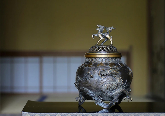 第二次世界大戦終結後まもなく、400年余りのモノづくりの伝統が息づく富山県高岡市の金屋町にて、創業した四津川製作所。初代の與四郎氏が「喜泉(きせん)」の屋号で花瓶を製作したことに始まり、創業初期は真鍮鋳物や大量生産向けの鉄鋳物の製作を行なっていました。その後高度経済成長とともに、美術的価値が高いものに注目が集まるようになり、とことんまで原型製作に拘った製品を作り続け、その技術により意匠美しく技巧を凝らした茶道具や香炉を生み出しました。