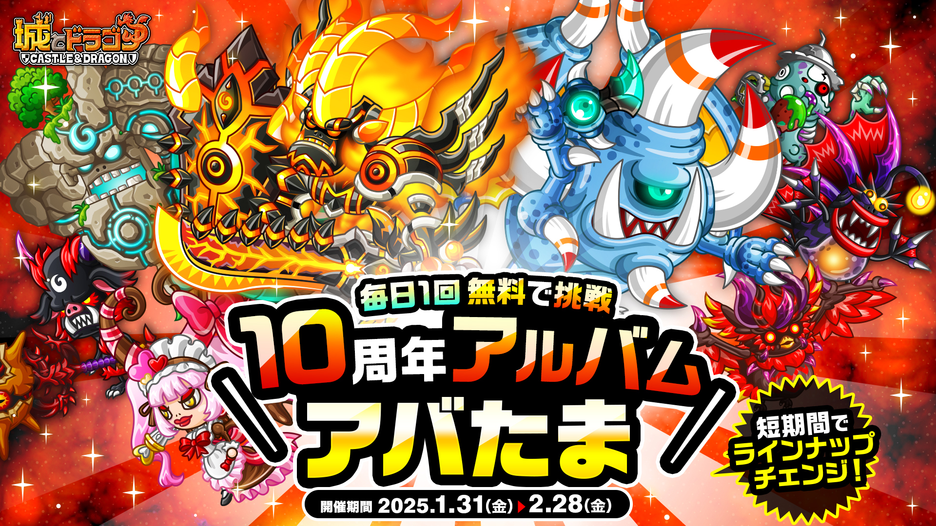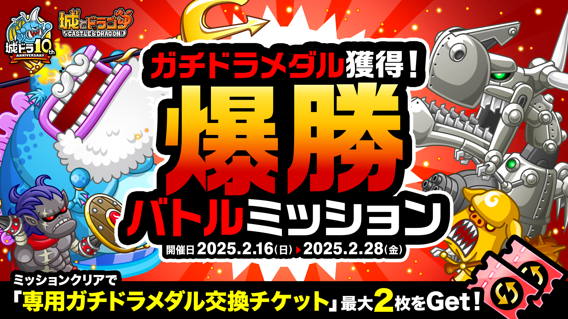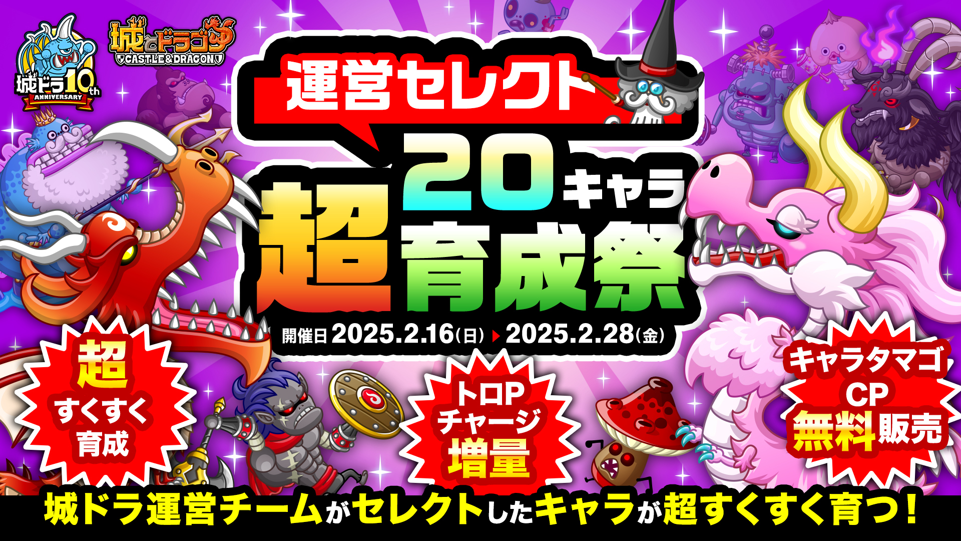 株式会社アソビズム(本社:東京都千代田区、代表取締役:大手智之)は、App Store・Google Playにて好評配信中の『城とドラゴン』で、「ありがとう10周年!城ドラ超感謝祭(後半)~大型アプデ実施~」が2025年2月16日(日)より開催中であることをお知らせいたします。