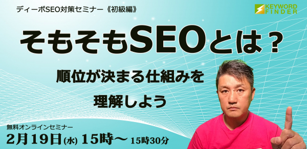 SEO対策サービスの開発・販売を行っている株式会社ディーボ(札幌市、代表取締役社長:藤沢 竜志、以下:ディーボ)は、2025年2月19日(水)15時にSEO対策セミナー「そもそもSEO対策とは?」を開催します。