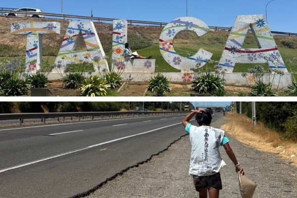 砂漠地帯を抜けたことで、チリ中部からは景色に大きな変化が生まれたそうです。膝下までの丈だった草むらが、背の丈ほどになり、青々とした木々を見上げるまでに。色彩も豊かになり、黄色や赤、紫といった花々が咲き誇り、イチゴ畑やワイン畑が広がるようになりました。