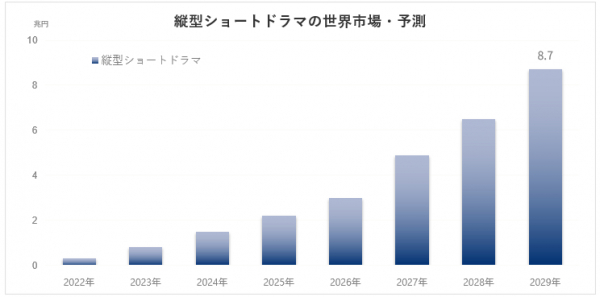 上記のグラフの通り、YH リサーチの調査によると、縦型ショートドラマ市場は2029年には世界で約8兆7000億円と、2023年の10倍以上に成長すると予想されています。スマートフォンで手軽に視聴できるこのフォーマットは、特に若者層から支持されており、企業広告やプロモーション動画においても高い効果を発揮します。