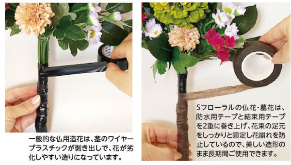 フラワーデザイン企画等を行う「Sフローラル」(大阪府茨木市、代表:西村 小百合)が手掛ける【創作仏花兼用墓花】は、屋内仏壇と、屋外のお墓、どちらにも飾ることのできる、これまでにない本物の様なアートのお供え花です。生花のような瑞々しさと美しさを保ちながら、風雨にさらされても強く・枯れることなく長期間そのままの姿を維持できるのが特長です。反響多数につき、ECサイトはじめ、取り扱いを強化いたします。