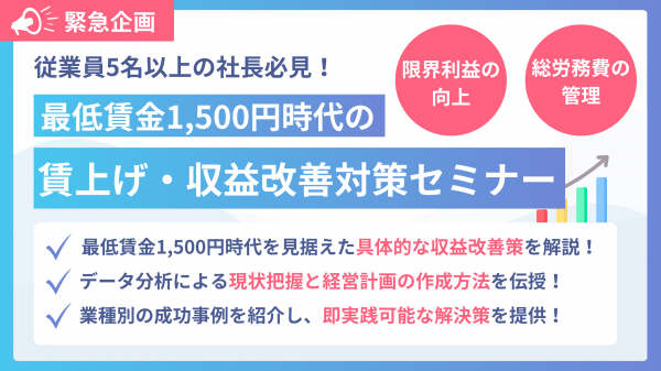 緊急企画!従業員5名以上の社長必見! 最低賃金1,500円時代の賃上げ・収益改善対策セミナー