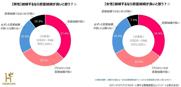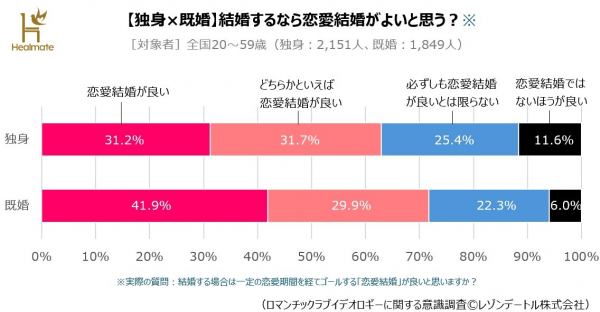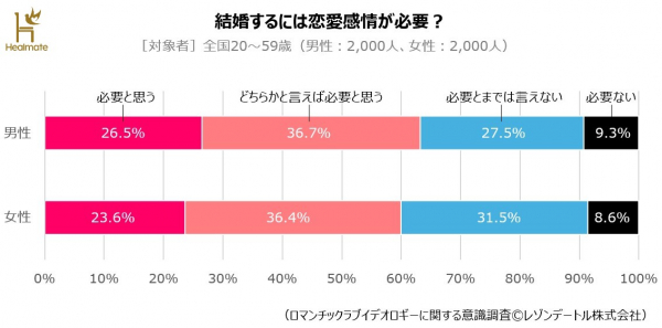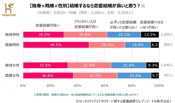⇒「恋愛感情と結婚に関する実態調査 第1報」詳細版(https://healmate.jp/survey/romanticideology_marry)