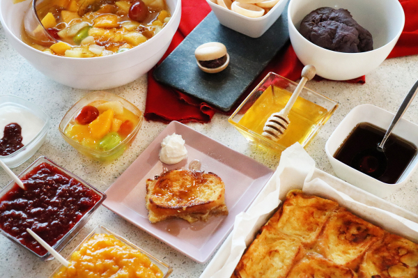 当店では、一流料亭出身の総料理長が持つ技術と知識を注ぎ込み、職人が厨房で丁寧に手作りした和洋の小鉢をご提供します。9升トレイにセッティングすれば、彩り鮮やかでバランスの取れた食事を楽しめる、これまでになかったビュッフェスタイルです。これからも朝食の研究を進め、「わざわざ食べに行きたくなる朝食」・「日本一の東京の朝食」を目指して参ります。