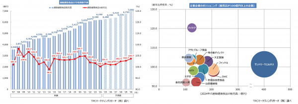 ◆ 2025年については、2024年比1.5%増の6,280億円となる見込み。2024年10月より景品表示法の改正が施行され広告規制が強化されたことに伴い、新規顧客の獲得効率のさらなる悪化が懸念される。さらに、紅麹問題を受けて機能性表示食品制度の見直しが行われている。このため今後は、機能性表示食品制度改正に対する素早い対応と既存顧客のLTV最大化に向けた施策を強化することがさらなる市場成長につながると考えられる。