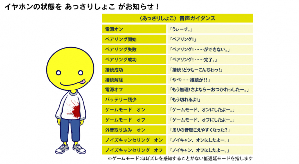 本モデルは、ゲーム実況者「あっさりしょこ」の録り下ろし音声ガイダンス(全13ワード)を搭載。また、充電ケースの天面やイヤホン本体に加え、パッケージにもあっさりしょこをイメージしたモチーフをあしらい、ファンアイテムとしても魅力的な仕上がりとなっています。日常使いにも馴染むデザインが特徴です。