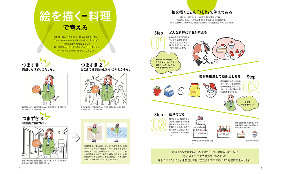 より簡単な方法で「キャラクター」を引き立たせ、「場面」を作り「空気感」を伝える。決して難しい理論ではなく、いますぐに取り入れられる「魅力的な絵を完成させる」テクニックがたっぷりと詰まった一冊です。