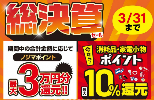 総決算キャンペーンサイト:https://www.nojima.co.jp/campaign/shizyousaidainosakusen/