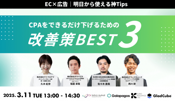 株式会社グラッドキューブ(本社:大阪市中央区 代表取締役 CEO 金島 弘樹 以下:グラッドキューブ)は、株式会社マイクロアド(本社:東京都渋谷区 代表取締役 社長執行役員:渡辺 健太郎、以下 マイクロアド)が主催するオンラインセミナーにおいて、2025年3月11日(火)13:00より登壇いたします。