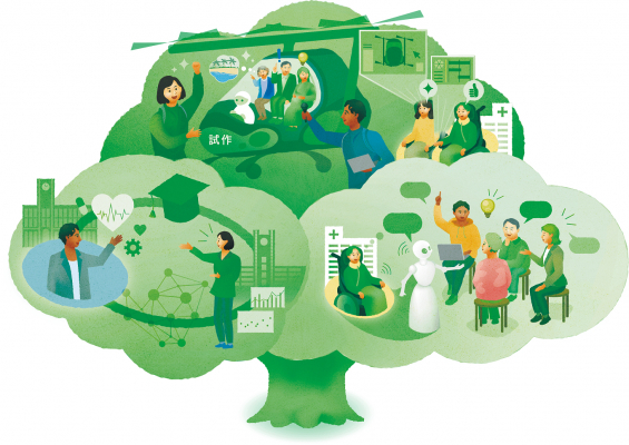 サブ課題Bでは、特に、誰もがいつでもどこでも能力を伸ばせる「学び方」と、それを生かした多様な「働き方」が可能であり、人々が生涯にわたり生き生きと社会参画し続けられる社会の構築を目指しております。具体的には、個人が多様な選択肢の中から自らの将来像を描き、その実現に向けて主体的な学びが促進される仕組みの構築、伸ばした能力を多様な働き方の中で生かすことができる環境整備、「働き方」の格差解消を目指しております。同時に、性別や障害の有無等により個人の選択が阻害されることがないよう、ダイバーシティ&インクルージョン(D&I)の考え方を社会に浸透させるための実証研究を行い、誰もが自分の望む学び方・働き方を選択するための社会基盤の構築に取り組んでおります。
