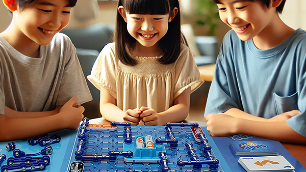 「遊びながら電気回路を理解する」というコンセプトのもと、戦略的思考と科学的知識が自然と身につく設計に。