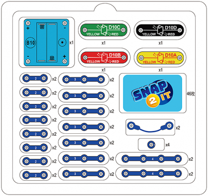 プレイヤーは、カードに示されたスナップパーツを使い、いち早くLEDを点灯させた者が勝者となるというシンプルながら奥深いルールが特徴です。
