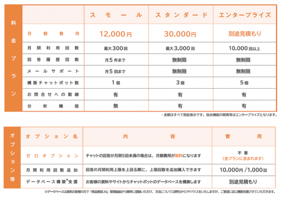 商品解説AIでは、スモールプラン、スタンダードプラン、エンタープライズプランの3つの料金プランが用意されており、企業の規模やニーズに応じた柔軟な選択が可能です。低コストから始められ、高度な機能が求められる場合にも対応可能です。
