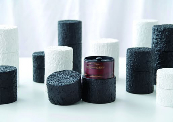 樺細工を今日的な視点で見直し、現代的な魅力を持つ工芸へとアップデートするプロジェクトのひとつ。樹皮の持つ有機的な凹凸の魅力を引き出すよう、白または黒のマット塗装を施しました。これにより伝統的な樺細工の工法では難しかった材料の使用が可能となり、限りある資源の有効活用が出来るようになりました。また内部は伝統的な工法で仕上げられ、赤く磨かれた伝統色が外装との美しいコントラストを生んでいます。