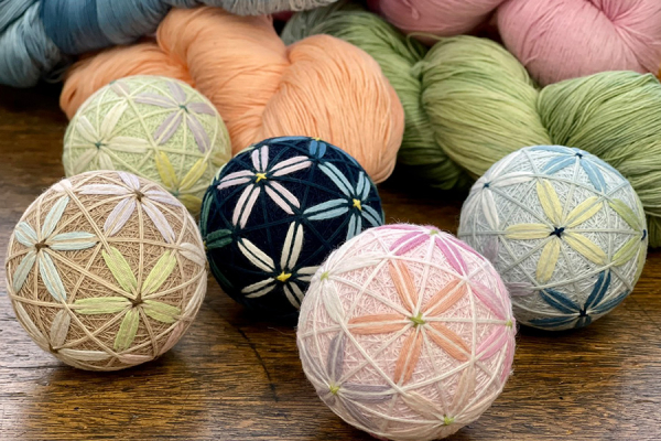 初心者の方にも、経験者の方にも楽しんでかがっていただける模様です。土台のまりとかがり糸は、当日お好きなものをお選びいただけます。