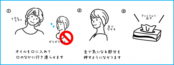 ・残ったオイルはティッシュに出して、飲み込まないようにしてください。