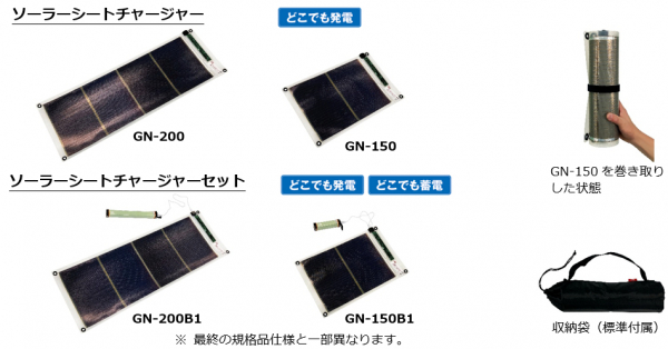 株式会社オーエス(本社:大阪、代表:奥村正之)は、携帯性が高く、太陽光を利用しどこでも発電できるソーラーシートチャージャー「GNシリーズ」の新機種(GN-200/GN-150、GN-200B1/GN-150B1)を発売します。