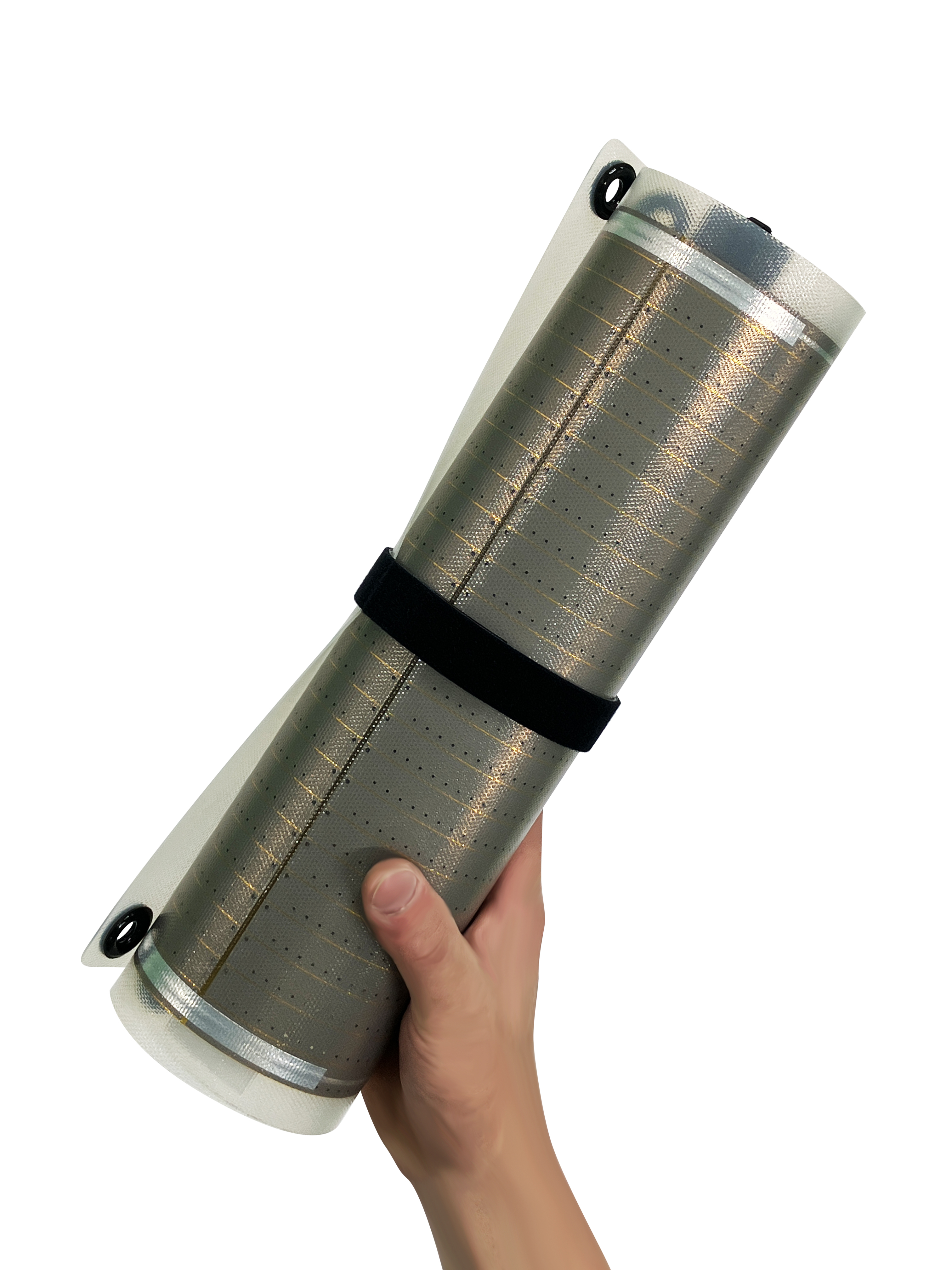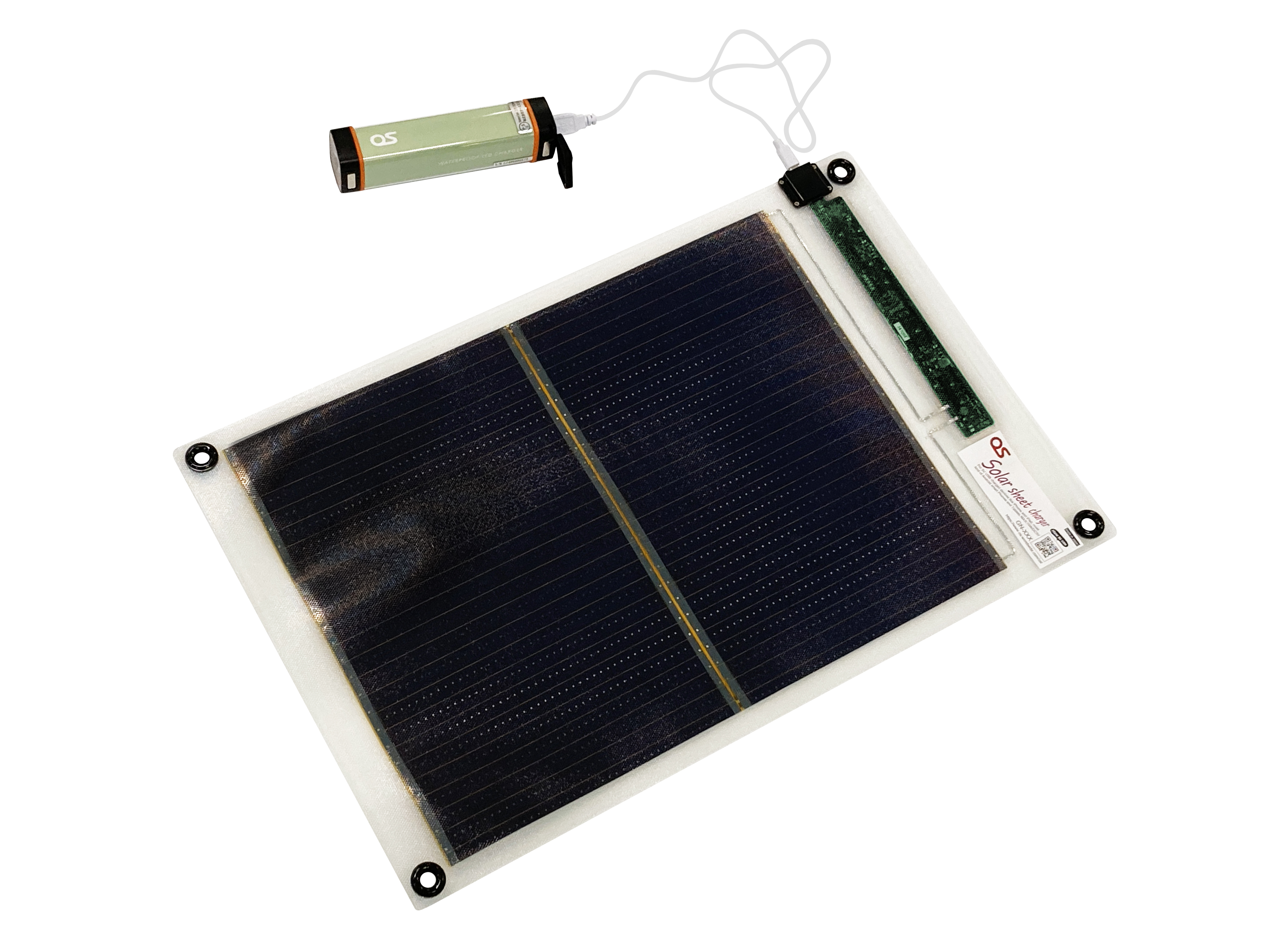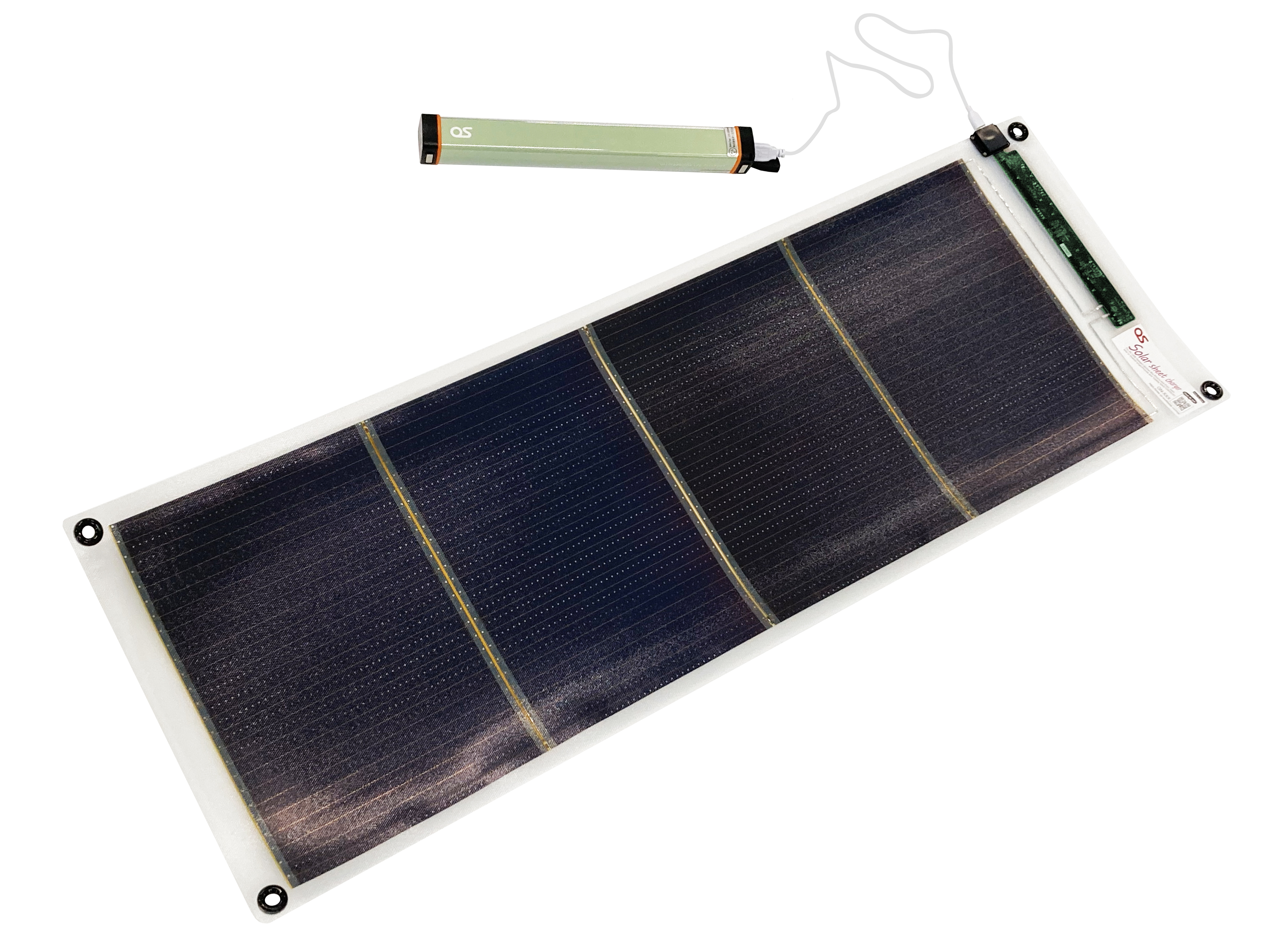 また、巻き癖がつきにくく、シートを広げて簡単に使用できる設計を採用。緊急災害時はもちろん、キャンプなどのアウトドアでもストレスなくスムーズに展開して利用することができます。均一でフラットな平面性は太陽光を均一に受け止め発電し、安定した電圧電流の確保を実現します。