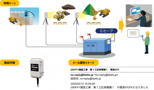 株式会社GRIFFY(本社:東京都千代田区、代表取締役 入澤 拓也、以下「GRIFFY」)は、建設現場で稼働する発電機の電源ON/OFFの通知や発電機稼働状況の遠隔監視を可能とし環境負荷の軽減に貢献する、発電機稼働状況監視システム「Gセーブ」について、2025年3月より提供開始することをお知らせします。